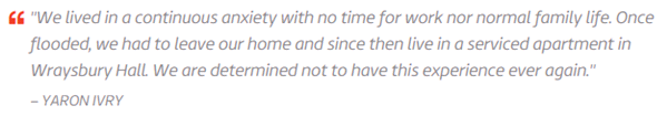 At the beginning of this year, torrential flooding spread across Berkshire and hit he small towns of Windsor, Datchet and Wraysbury. Many people like Yaron (mentioned above) were severely affected by the adverse weather and were forced to leave their homes in search of temporary apartments. Whilst the weather had huge financial implications there was also the emotional upheavel that many had to go through which often goes unnoticed. As Yaron rightly says the “anxiety” and “unpredictability” of living through the flooding turned many households upside down.