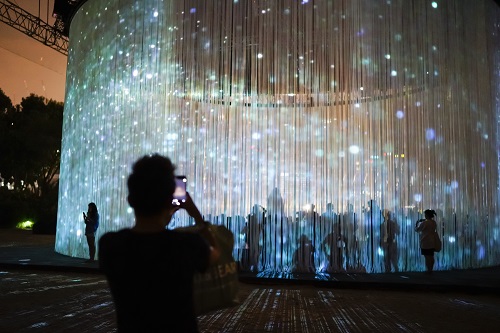 Composed of about 6000 silicon rods linked to a 20 metre ring anchored to the ceiling, visitors who step in this multi-sensory art composition enjoy the therapeutic benefits of an immersive visual and sound experience.
