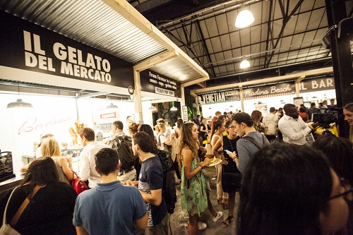 This Italian style market is based on the principle of the HyperViviality, which succeded at 2015 Expo in Milan. The format is the same as the one that from May to December 2015 had led to Milan three million people: kiosks and carts style street food, benches and planks style lunch venues, symbiotic dinners and regenerative drinks.