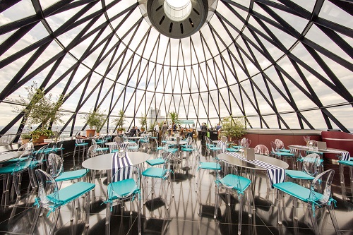 Summer Sky Riviera on the 40th floor of the the Gherkin skyscraper, was designed by the global famous architect Lord Foster. As the name might suggest, it’s designed after the French Riviera. Located in the heart of City Tower Hill the place is bursting with South European vibes and it became a way of life for the HyperViviality trend lovers.